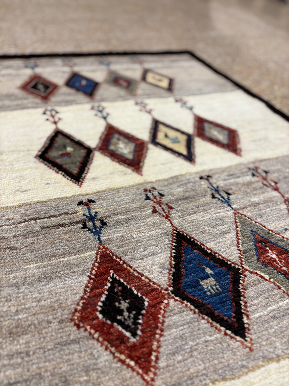 絨毯の世界でも年ごとに流行があり、絨毯商は戦略を練って遊牧民への発注をし、新しく時代に映えるギャッベを制作しています。しかし、そんな流行を超越した「 歴史の流れの中を生き延びてきたギャッベ」が存在するはずです。そしてまた、新作ギャッベの中に「歴史を生き延びていく個性的で魅力に富んだギャッベ」があるはずです。そんなギャッベを探す旅。