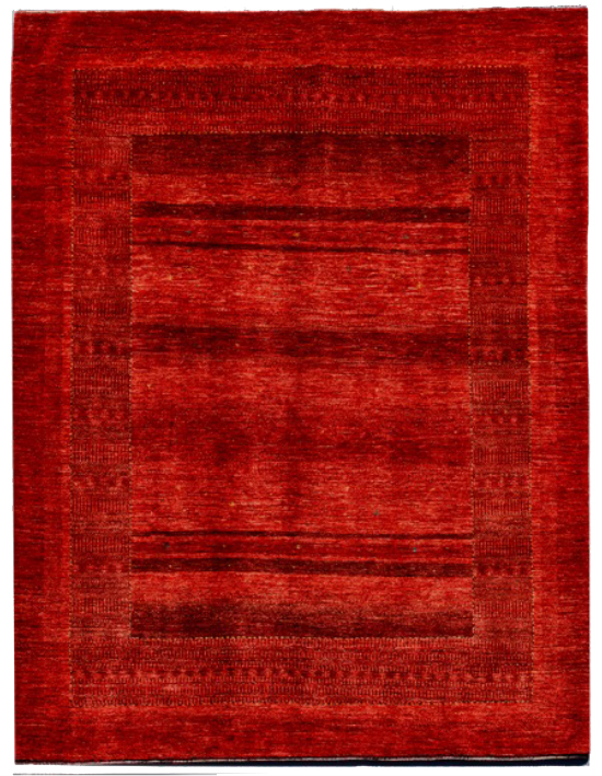 誇りやアイデンティティを示すトランジが5つ並び、カシュガイ女性が大好きな赤色をベースにしたこのギャッベは、オリジナルデザインのギャッベ。